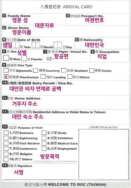 ๋๋ง ์ด๋ฏผ๊ตญ ๊ณต์ ์น์ฌ์ดํธ์์ ์ ๊ณตํ๋ฉฐ, ‘Taiwan Arrival Card’๋ก ๊ฒ์ํ๋ฉด ์ฝ๊ฒ ์ฐพ์ ์ ์์ด์.