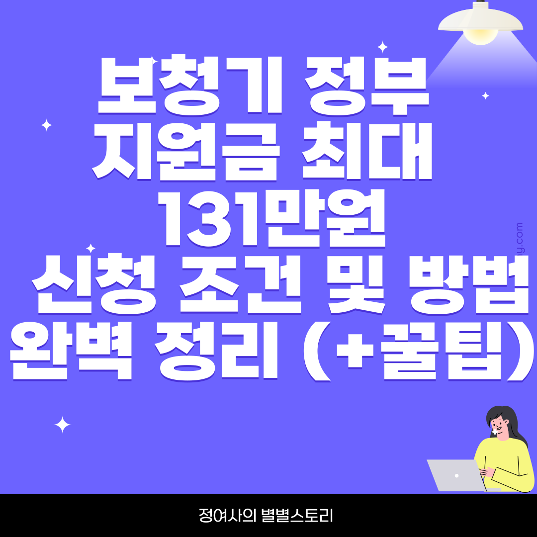 ๋ณด์ฒญ๊ธฐ ์ •๋ถ€ ์ง€์›๊ธˆ ์ตœ๋Œ€ 131๋งŒ์›, ์‹ ์ฒญ ์กฐ๊ฑด ๋ฐ ๋ฐฉ๋ฒ• ์™„๋ฒฝ ์ •๋ฆฌ (+๊ฟ€ํŒ)