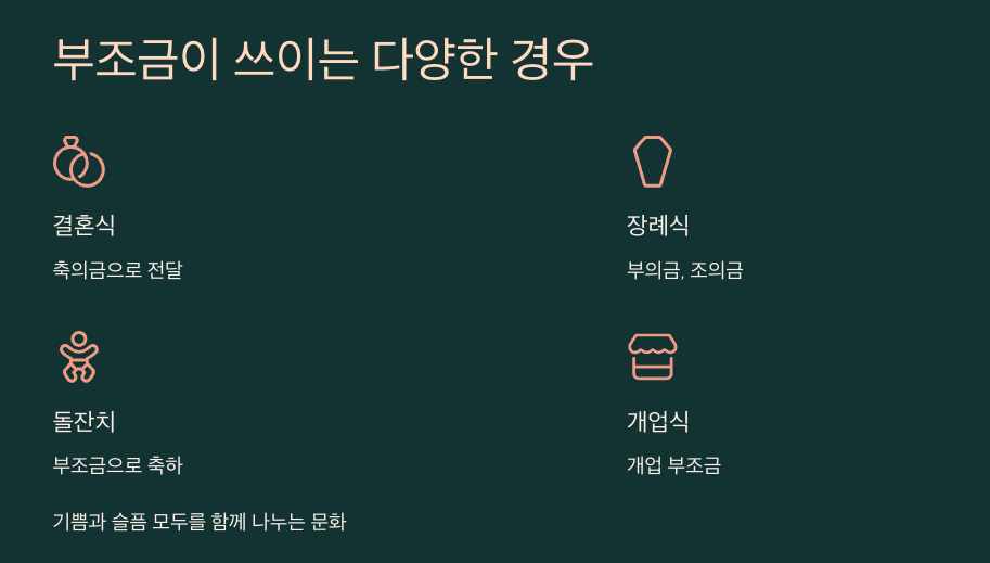 ๋ถ์กฐ๊ธ์ ๊ฒฝ์ฌ๋ ์กฐ์ฌ, ์ฆ ์ข์ ์ผ๊ณผ ์ ์ข์ ์ผ ๋ชจ๋์ ์ฌ์ฉ๋๋ ๊ฐ์ฅ ํฌ๊ด์ ์ธ ๊ฐ๋ ์ ๋จ์ด์ ๋๋ค. ๊ฒฐํผ์, ๋์์น, ํ๊ฐ์ฐ ๊ฐ์ด ๊ธฐ์ ์๋ฆฌ์ '์ถ์๊ธ'์ผ๋ก, ์ฅ๋ก์์๋ '์กฐ์๊ธ' ๋๋ '๋ถ์๊ธ'์ ํํ๋ก ๋ด๊ฒ ๋์ฃ . '๋ถ์กฐ(ๆถๅฉ)'๋ผ๋ ๋ง ์์ฒด๊ฐ ๋๋๋ค๋ ๋ป์ด๋, ๋๊ตฐ๊ฐ์ ๊ธฐ์ ์ผ์ด๋ ์ฌํ ์ผ์ ํจ๊ป ํ๋ฉฐ ํ์ ๋ณดํ๋ ์๋ฏธ๊ฐ ๋ด๊ฒจ ์์ต๋๋ค. ๋ค์ ๋งํด, ๋ถ์กฐ๊ธ์ ๋ง์์ ์ ํ๋ ์๋จ์ด์ ํ๊ตญ ์ฌํ์ ์ค์ํ ์ ์์ ์ฐ๊ฒฐ ๊ณ ๋ฆฌ๋ผ ํ ์ ์์ด์.
