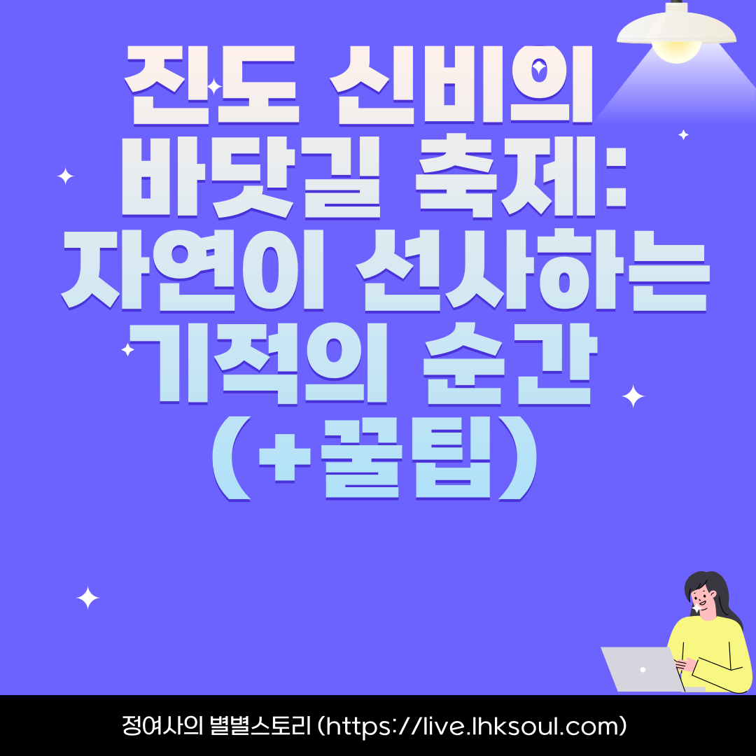 ์๋ ํ์ธ์, ์ฌํ๊ณผ ์ถ์ ๋ฅผ ์ฌ๋ํ๋ ์ฌ๋ฌ๋ถ! ์ค๋์ ๋งค๋ ๋ด, ๋ํ๋ฏผ๊ตญ ์ ๋ผ๋จ๋ ์ง๋์์ ํผ์ณ์ง๋ ์ธ๊ณ์ ์ธ ์์ฐ ํ์ ‘์ง๋ ์ ๋น์ ๋ฐ๋ท๊ธธ ์ถ์ ’์ ๋ํด ์ด์ผ๊ธฐํด ๋ณด๋ ค๊ณ ํฉ๋๋ค. ์ด ์ถ์ ๋ ‘ํ๊ตญํ ๋ชจ์ธ์ ๊ธฐ์ ’์ผ๋ก๋ ๋ถ๋ฆฌ๋ฉฐ, ์กฐ์ ๊ฐ๋ง์ ์ฐจ์ด๋ก ์ธํด ๋ฐ๋ท๋ฌผ์ด ๊ฐ๋ผ์ ธ ์ฝ 2.8km์ ๊ธธ์ด ์ด๋ฆฌ๋ ์ ๋น๋ก์ด ์๊ฐ์ ์ง์ ์ฒดํํ ์ ์๋ ํน๋ณํ ํ์ฌ์ ๋๋ค.