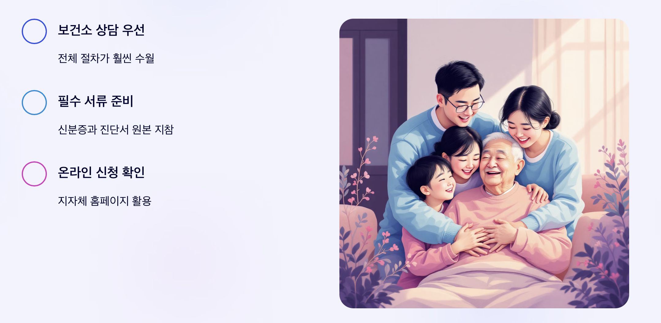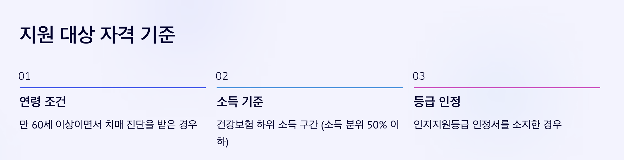 | ์ธ์ง์ง์๋ฑ๊ธ ์์์๋น์ค | ๋ ธ์ธ์ฅ๊ธฐ์์๋ณดํ ์ธ์ง์ง์๋ฑ๊ธ์ ๋์ | ๋ฐฉ๋ฌธ ์์ ๋ฑ ์ 80~90% ์ง์ |
