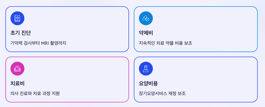 | ์น๋งค ์กฐ๊ธฐ๊ฒ์ง๋น | ๊ธฐ์ต๋ ฅ ๊ฒ์ฌ ๋ฐ MRI ์ดฌ์ ๋น์ฉ ์ผ๋ถ | 1ํ ์ต๋ 10๋ง ์ ๋ด์ธ |
